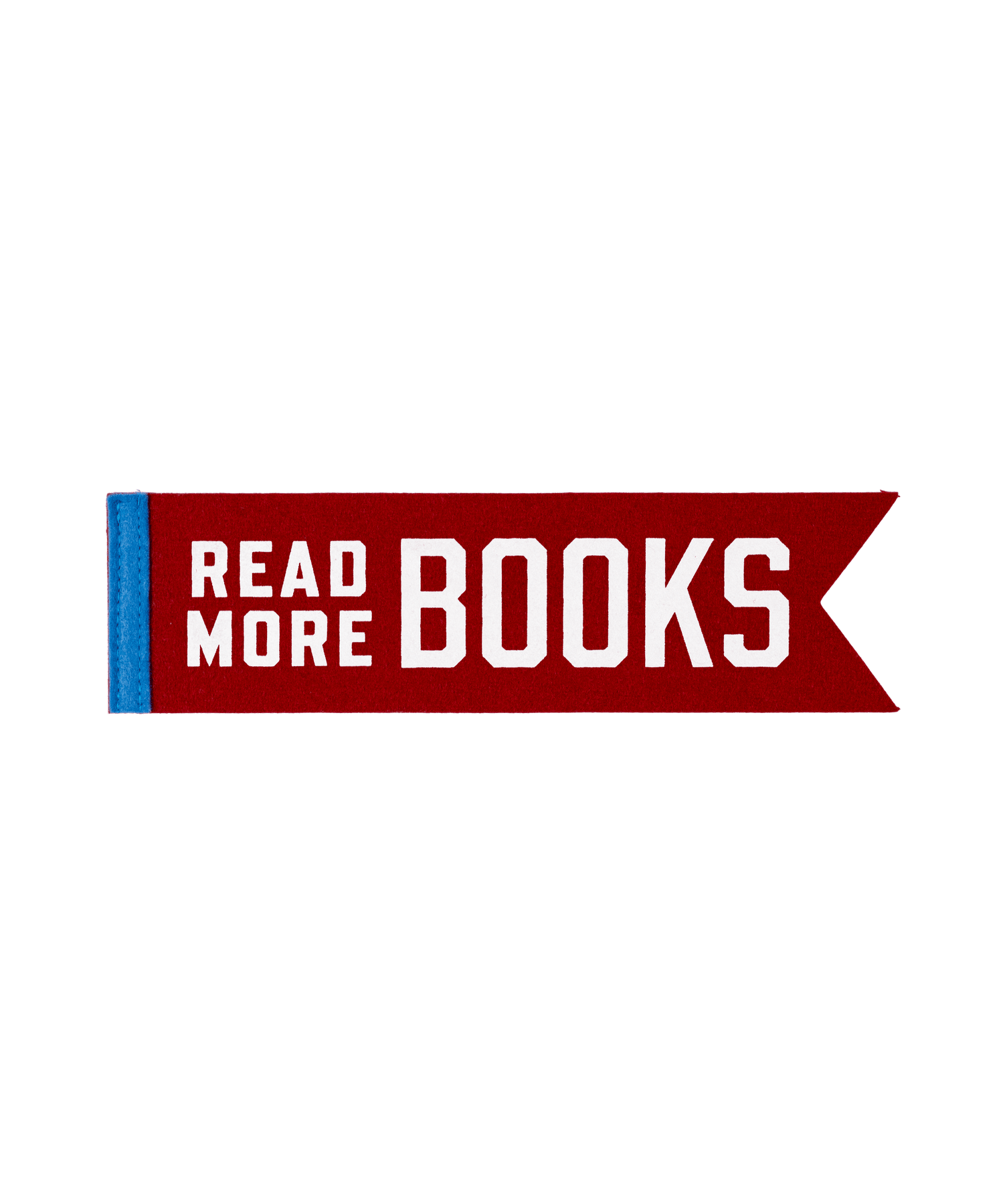 This red and white felt pennant makes a statement for book lovers everywhere. It features crisp “READ MORE BOOKS” lettering in bright white and Columbia blue on a sturdy red wool blend, reminding readers of the irreplaceable magic of ink and paper.