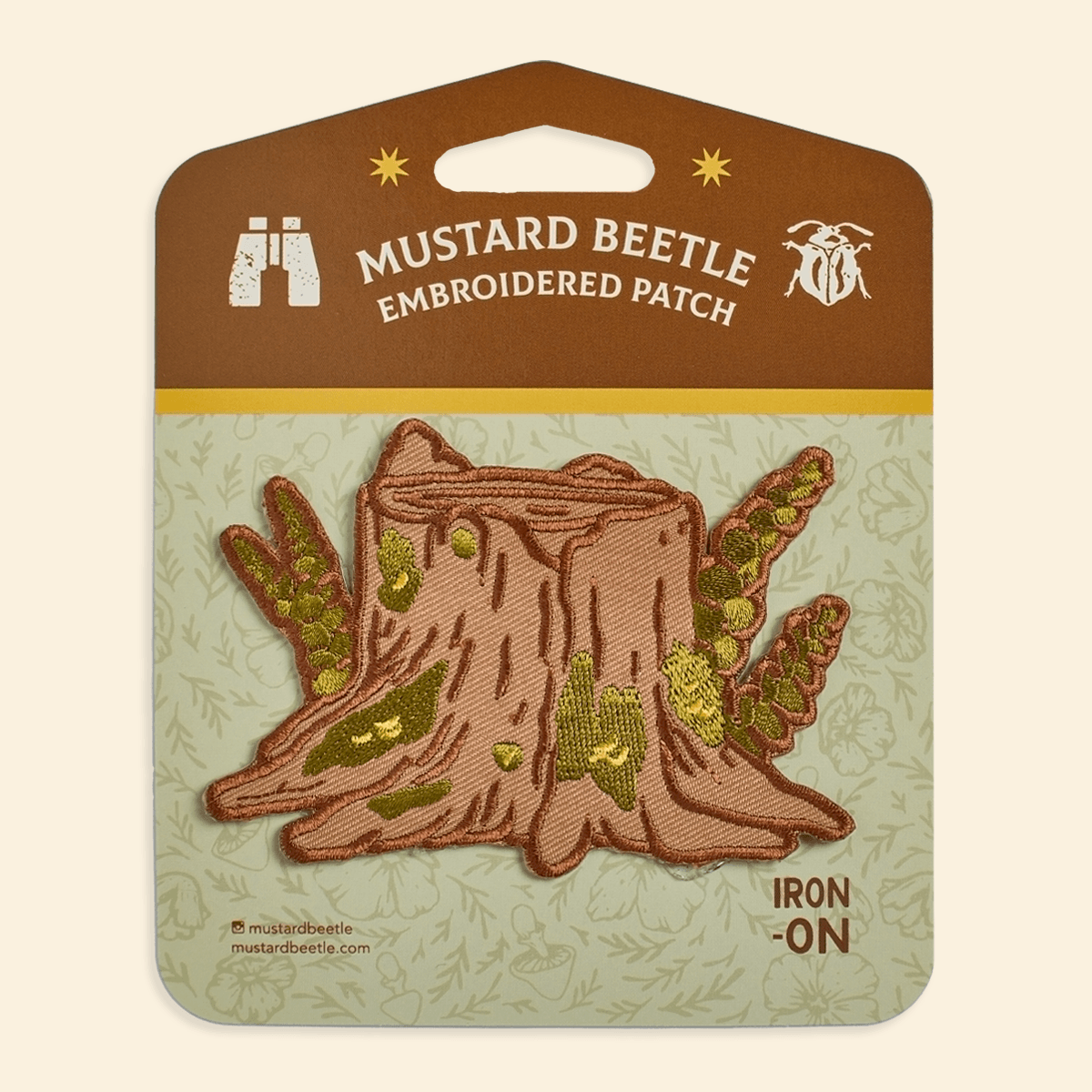 This limited edition iron-on embroidered patch brings the “Stump” illustration to life with textured stitching and earthy tones. Each patch measures approximately three by three inches and features a heat-activated adhesive backing for effortless application to jackets, bags, hats and more.