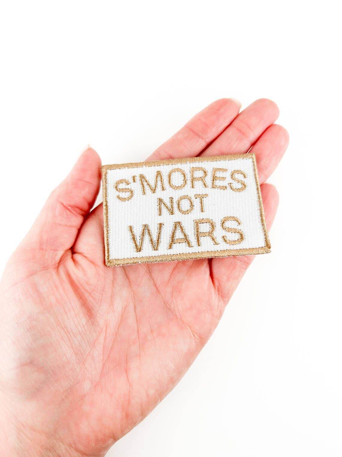 - High-quality embroidered fabric with tan S’mores Not Wars text