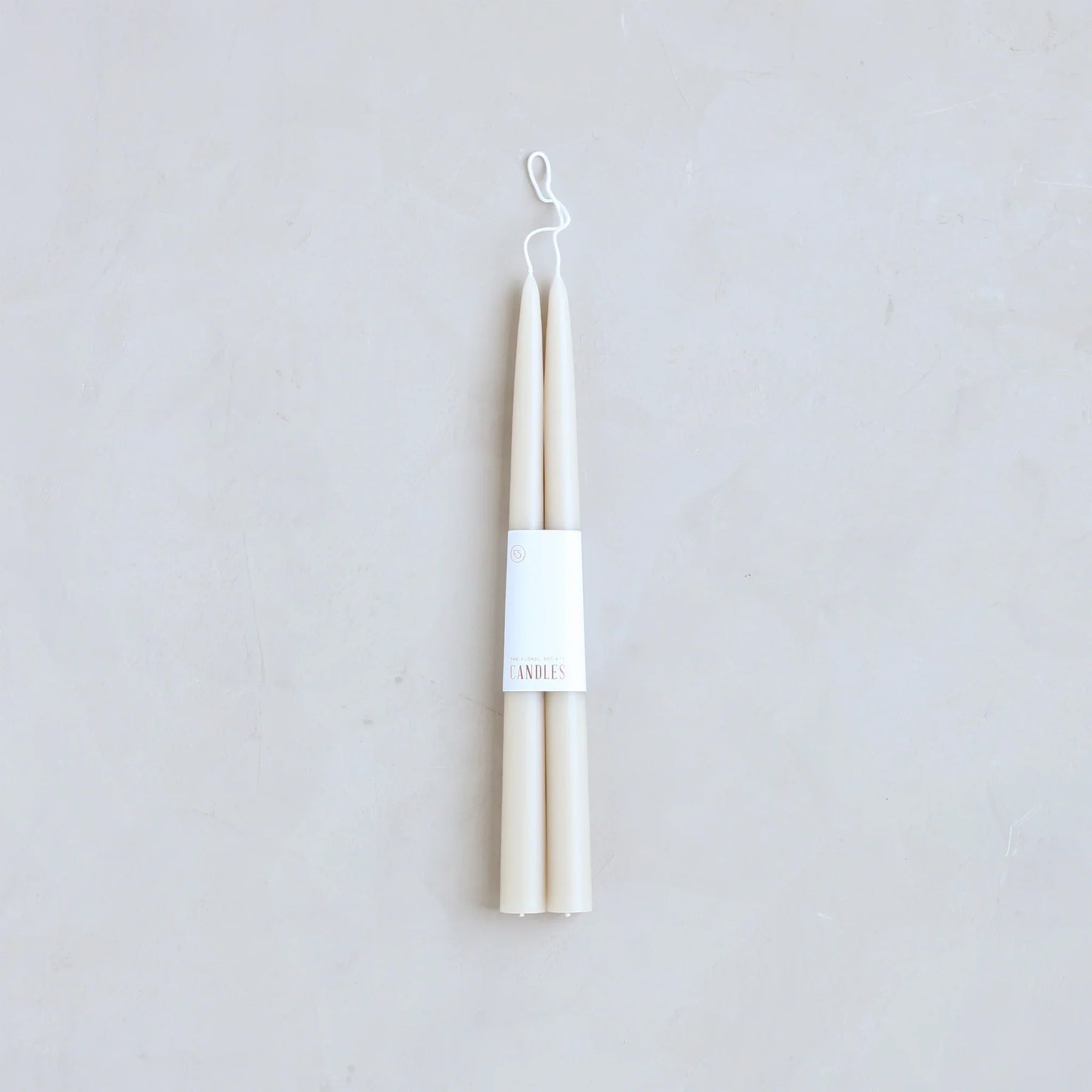 These 12-inch parchment taper candles bring understated elegance to any table or mantle. Their warm ivory tone makes them easy to pair with both rustic textures and refined décor, offering a gentle glow that enhances everyday meals and special occasions alike. With a clean, steady burn, they’re a classic staple for year-round use.