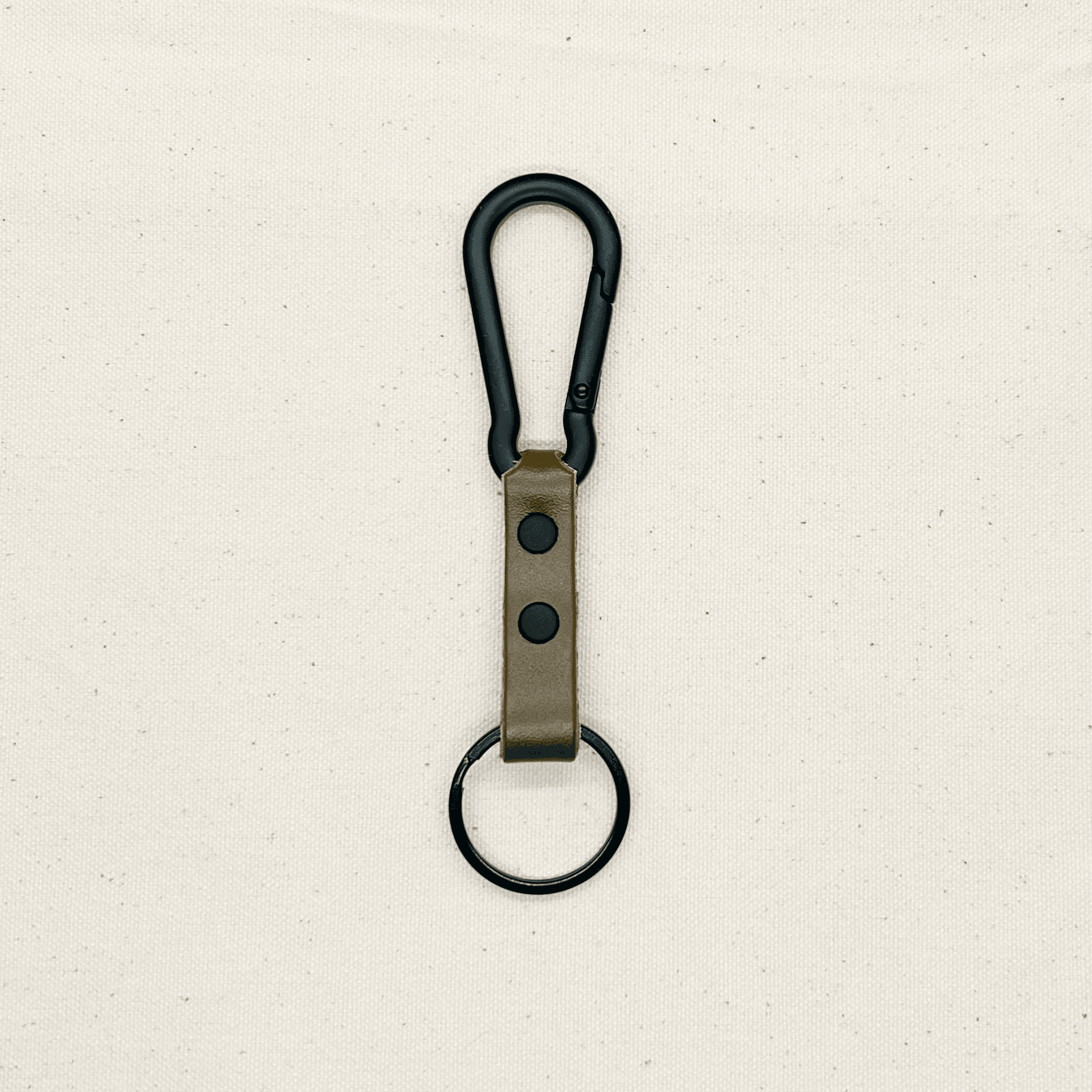 Part of the limited Fieldcraft Edition, this piece features olive leather stitched in black and anchored by matte black hardware. The carabiner's sleek silhouette clips easily onto a belt loop or bag, offering quick access to your keys without compromising on style. Made by Son of a Sailor in their Texas studio, it’s crafted for those who move between nature and the city with equal ease. Whether navigating trails or transit, it’s a dependable companion with understated character.